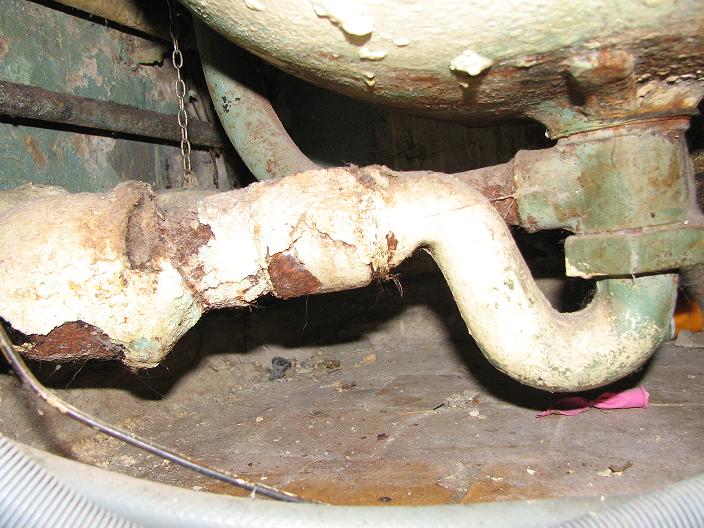 - Правильно я понимаю порядок разборки: срезать, чтоб не мешала трубу идущую на перелив (все равно она висит в воздухе); отвернуть гайку (видимо ее греть надо будет?); отвернуть тройник (еще одна проблема скорее всего будет - как удержать от проворачивания слив?); выдернуть колено из канализационного раструба.
