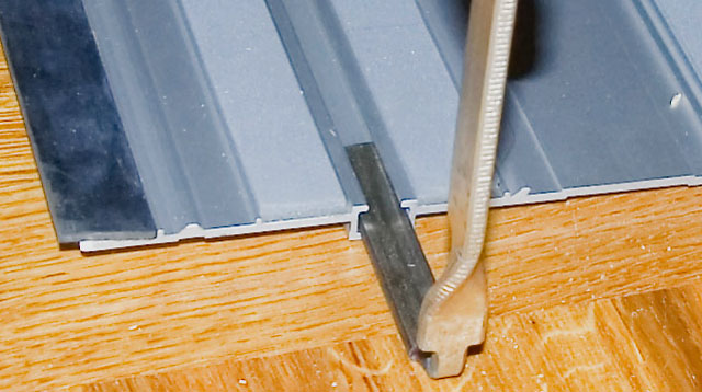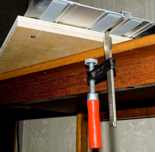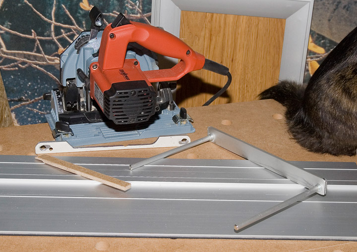 Пробовал туда тоже алюминиевую ставить, но при плотном поджатии параллельного упора к гребню, он (гребень шины) оказывается в положении тормозного диска, зажатого с двух сторон тормозными колодками - пила слишком туго ездит по шине, а вот МДФ вполне справляется с ролью антифрикционной прокладки.
