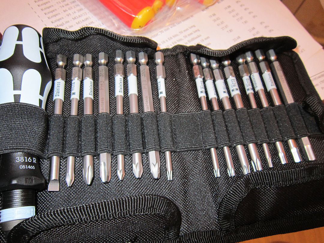 Нержавеющие шестигранники (увы, магнитные), нержавеющий Kraftform Kompakt, киловольтный Kraftform Kompakt Torx, рукоять-трещотка 816RA, магнитная рукоять-коротышка 811/1. Ничего нового для завсегдатаев форума и инструментофилов, но это реально "маешь вещь". Жаба молчит. :o