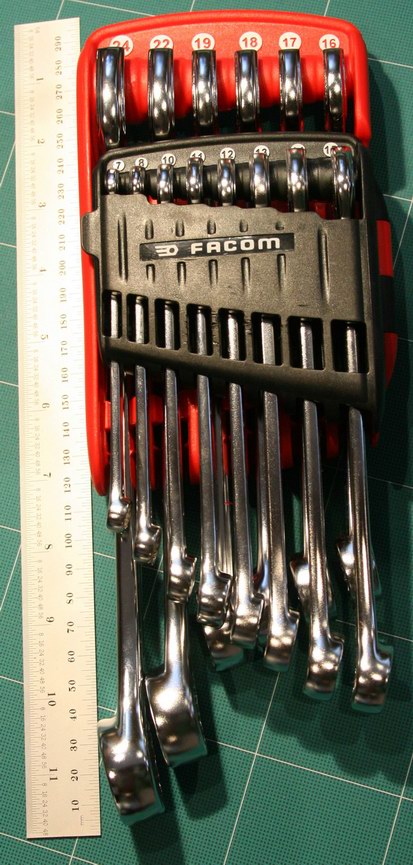 Вот такой наборчик пришел. На первой фото - снял клипсу на ремень. Странно, как на маленькой "рулеточной" клипсе можно вешать почти два кило на пояс... На последних фото - страшненький heytec в сравнении с facom.
