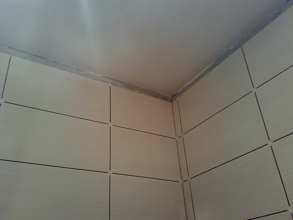 а может тем же плиточным клеем залить полосы и с заходом на потолок сделать закругление? а потом вместе с потолком и покрасить? потолок будет как бы купольный. только радиусом закругления особо не увлекаться:)