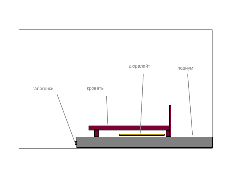 О-о-о-о-о-о.... Тогда я не понимаю..... Подиум не в ровень с кроватью? Что, ступенька, что ли? Нарисовал бы......