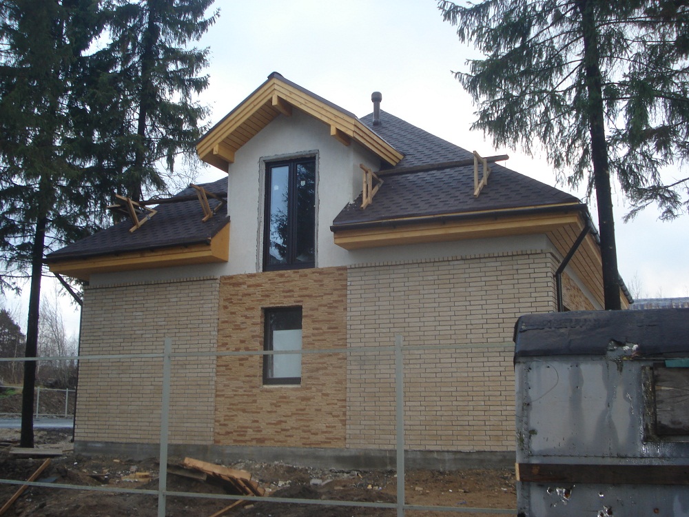 первые 4 фото это дом который вроде будем в декабре делать а дом в котором сейчас типовой каркасный по финскому проекту ,был оббит фагонкой ее сняли и облицевали кирпичом вот фото дальше