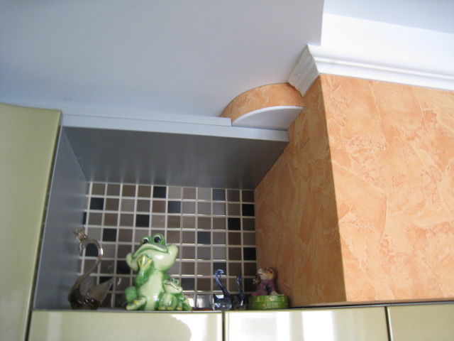 А это я делал когда-то (на фото).Хозяева решили сделать высокие шкафы.Хотя сначала рассчитывали низкие.Так я еле впихнул потом трубу на вытяжку.Так что,рассчитывайте все заранее и "коней на переправе не меняйте".