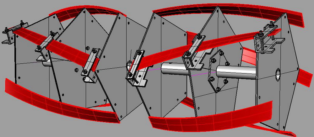 А гнуть действительно нужно, если винтовую повехность хотите получить, для примера: . На вашем рисунке тоже хорошо видно - для крепления по боковым стенкам ножи необходимо гнуть по спирали на 36 град. Но есть и другая проблема рессорная сталь сваривается не так уж просто, как хочется, может легче из среднеуглеродистой стали сделать. Объёмы у нас не большие, ИМХО.