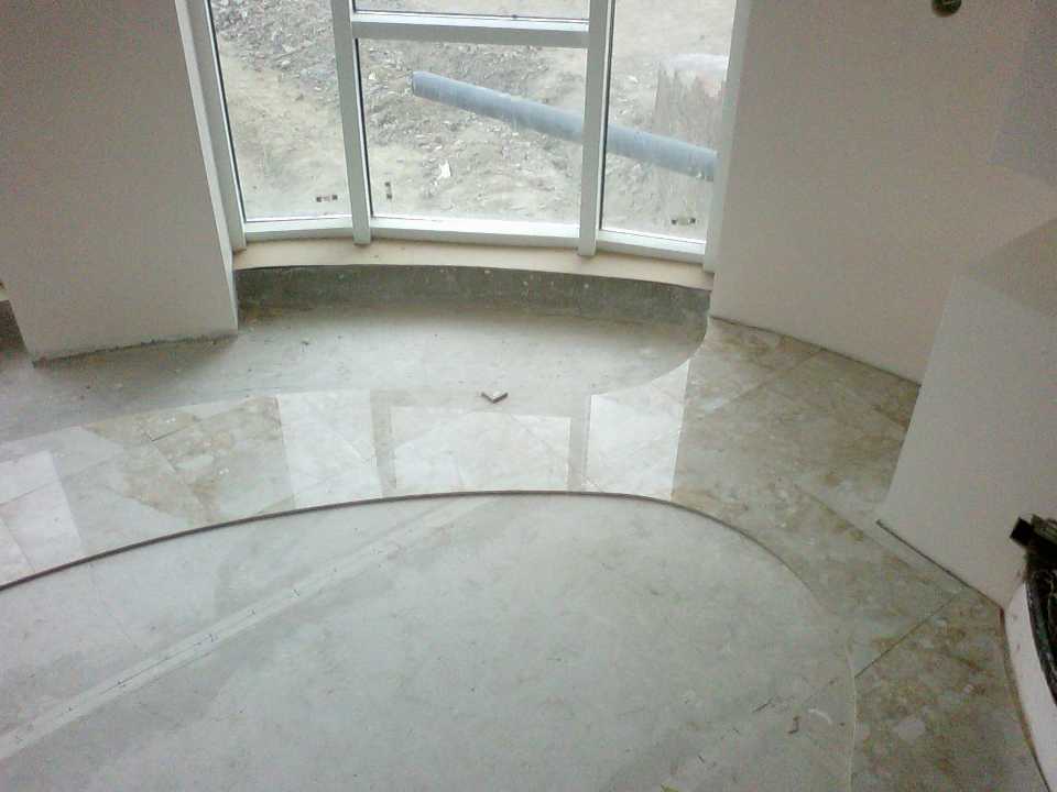 До начала работы даже предположительную стоимость не мог оценить.Плитка без декоров.Сначала предполагалась резка по шаблону болгаркой.При этом заказчик видит реальную линию реза,есть возможность откорректировать,если не нравится в процессе изготовления шаблона.Недостатки:плитка,как бы покрыта слоем стекла,образуются глубокие сколы,вывести которые очень трудоемко,какое-то количество плитки обязательно ушло бы в брак,пиния наверняка была бы не совсем четкой,много грязи и пыли и очень трудоемко.Решил рискнуть-нарисовать на компьютере и отдать на гидрорезку(спасибо форуму и отдельно Gennady от которого в свое время и узнал о гидрорезке).При этом заказчик видит виртуальную линию,оценить которую не всегда можно реально,неправильно заданные размеры и положения линии и вся партия плитки идет в отход.Если все хорошо,то вроде бы так и должно быть,в случае промаха-исполнитель виноват.На полу с помощью лазерного построителя создал прямой угол, нарисовал координатную сетку и через каждые 10 см снял размеры.День работы.В программе Архикад построил кривую с раскладкой плитки.Вечер работы за компьютером.На следующий день согласовал линию с заказчиком и отредактировал линию.В процессе размещения заказа выяснил,что резка плитки по кривой заданной в форме шаблона обходится в 600р.за погонный метр.При ручной резке вряд ли обошлось бы дешевле при том,что часть плитки ушла бы в брак.В том виде,в котором сделал заказ(в виде файла dwg)рез обошелся в 240 р.за погонный метр.Т.е. за вечер на компьютере фактически заработал 7200р.-20 погонных метров и это не считая всего остального.Удача или опыт помог,но в итоге попал.Брать за риск?Отходов ноль.Совпадение абсолютное,кроме подхода к стенам,которые сам заложил с плюсовым допуском на всякий случай(в течении 3 часов устранено),линия четкая.В итоге:сама площадь укладки-приблизительно 4,2 м2.В итоге приобретено было 6,3 м2 плитки(16800р.),израсходовано 4,5 м2-11700 р.(остальные целые-можно вернуть),резка-4800 р.,затирка 100р.,клей-600р. В итоге все материалы-12400р.А работу можно оценить и в 10000р.,и в 20000р.Много-мало?Разница как видите существенная.При ручной резке-много отходов,теряются деньги на материале,при гидрорезке-риск загубить всю партию.:cool: