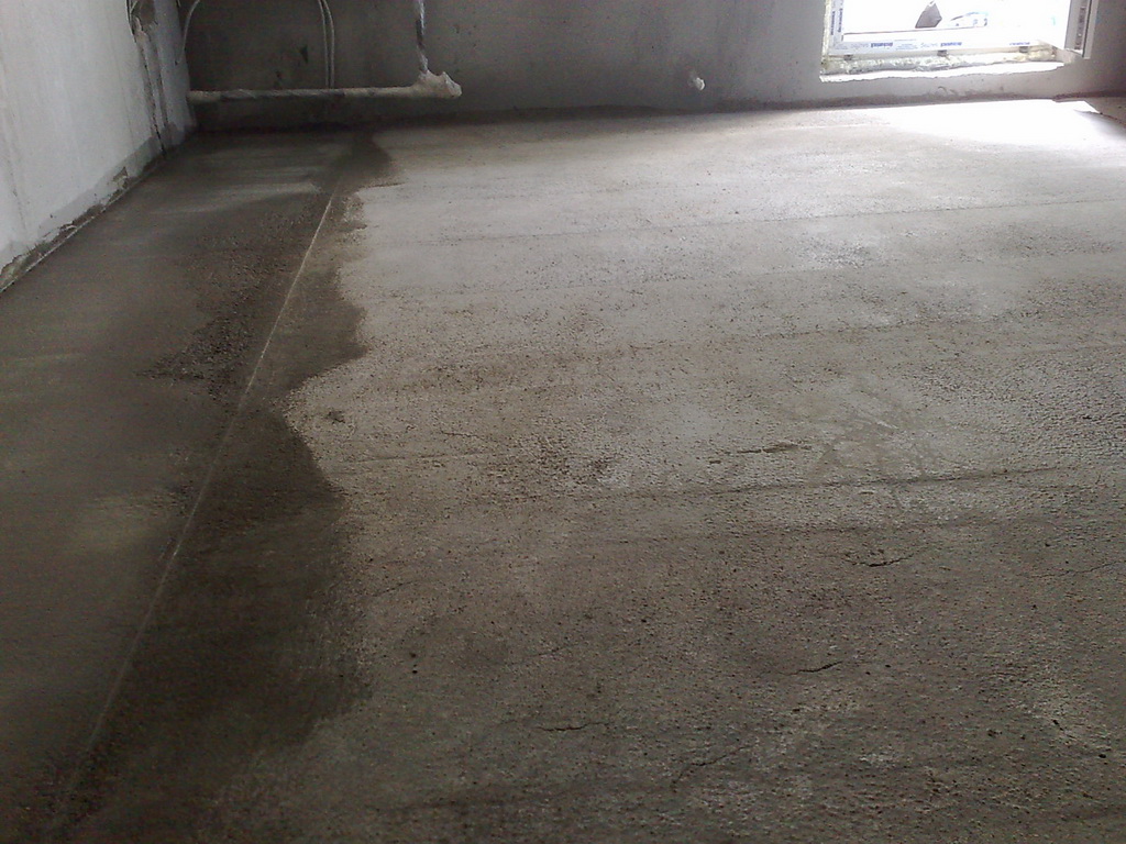 Просмотр сделанной работы и вот такая красота... Обычная стяжка, сделана пескобетоном М-300 2 дня назад. Пока стяжка сделана в 2х комнатах, в стяжке электрика. На пол планирутся замковая пробка на подложке. Строители конечно говорят,что трещины -это "нормально":) клянутся-божатся,что исправят.