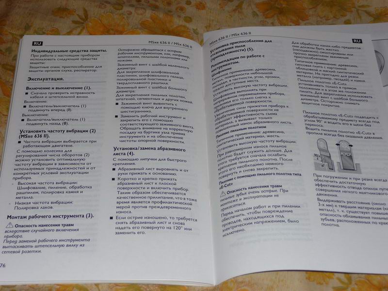 Вот вкратце: Модель - MSxe 636 II Мощьность - 180Вт Частота - 12000-21000 регулируемая 8 уровней Габариты пластинок (по углам) - 80мм Масса - 1.1 кг
