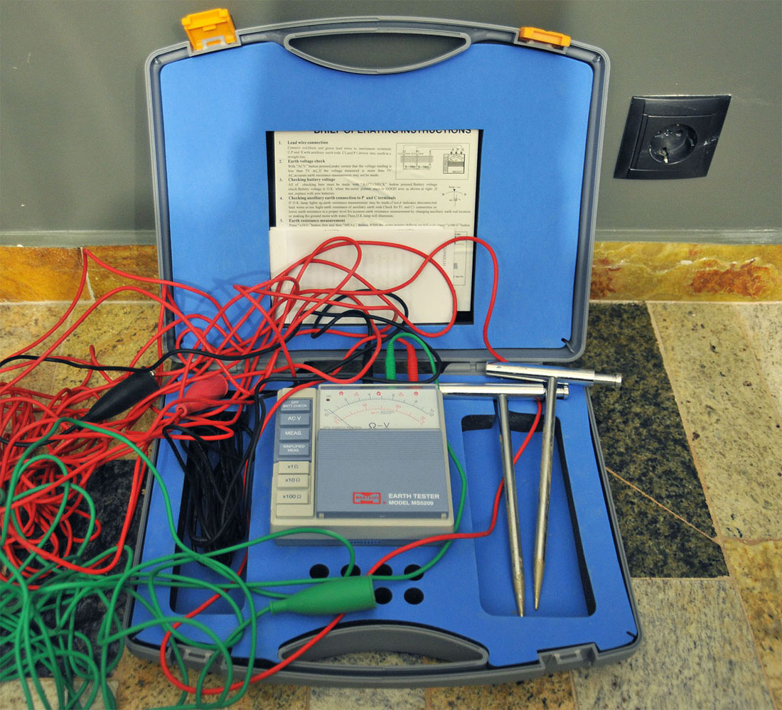 Заземление померила, прибор серенький, в чемоданчике, симпатичный.