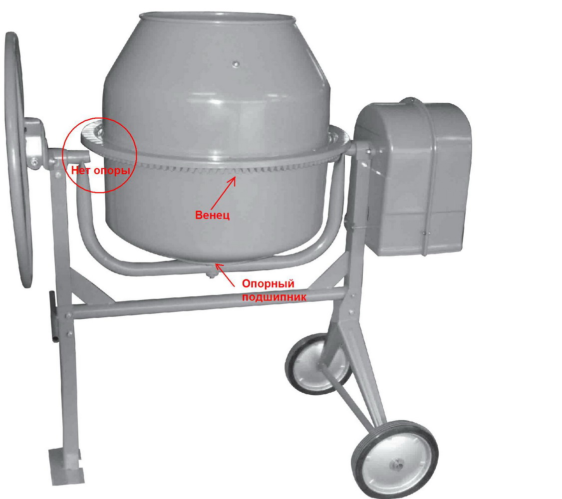 Второе на, что стоит обратить внимание - есть ли опорная шестерня на противоположной стороне от ведущей - уходит проблема перекоса... На большинстве смесителей которые представлены в розничной сети - таковая отсутствует.