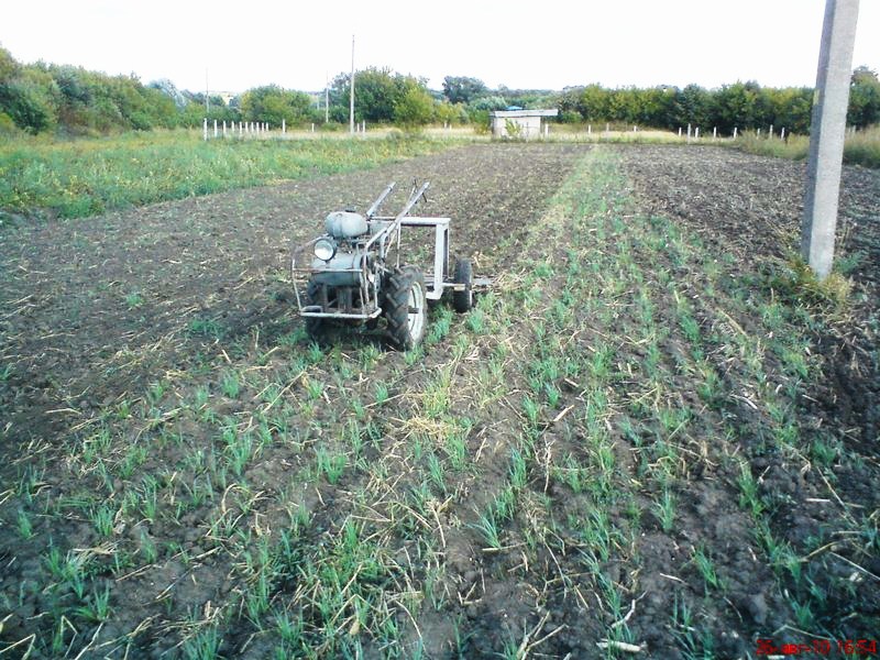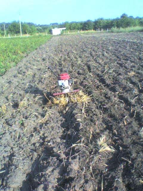 Продолжение подготовки участка под картофель на следующий год.После запашки сидератов(начало см.,после) небольшого дождя,была проведена фрезеровка участка с целью разбивания глыб и частичного выравнивания поверхности.26 августа после дождя произвел повторный посев сидератов(горчица+редька масличная).Закрытие семян проводил боронованием.Много всходов ячменя от запаханых колосьев,но не равномерно,разная глубина попадания зерна.При заделке активными роторами второй посев делать не пришлось бы.(то-же вариант выращивания сидератов) Ранее не вылаживал из-за возникших проблем с загрузкой файлов после реконструкции сайта,приходится пользоваться двумя браузерами.