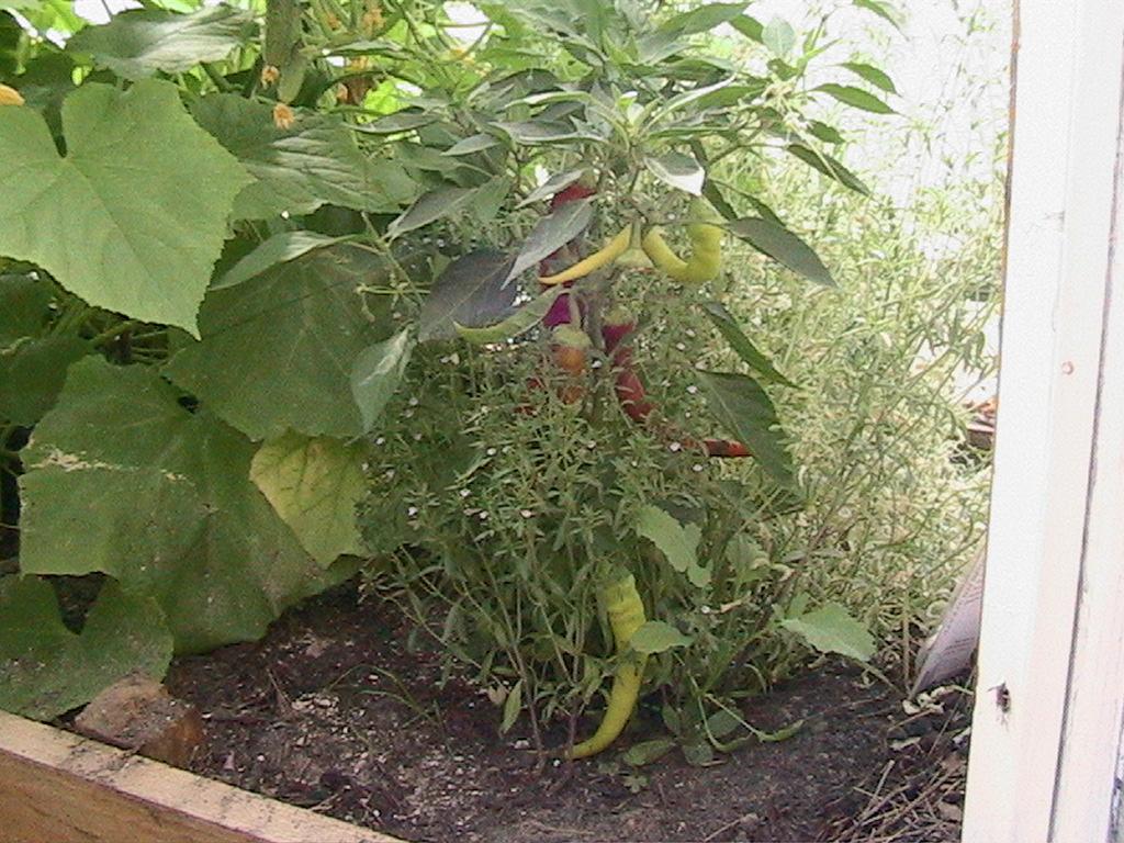 Peter_Pen написал : картоха растёт, уже набирает цвет. Огурцы пошли как недели две ... в теплице. Перцы зелёные, а вот острый краснеет в огуречнике.
