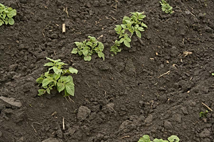 Вот взошла раняя картошка. Колорадский жук упал на неё, престижем её обрабатывать нельзя. Решил сделать первое послевсходовое окучивание дисками , чтобы спрятать невысокую ботву под землю. Картошка высажена 23-го апреля. Междурядье 60см, диски раставил на ширину захвата внизу 45см (регулируемое). Раней картошки не много, решил настроить диски в ручном режиме. При проходе слышен хруст разрыва корней, начал разбираться - тонкие корни картошки (см. фото, после дождя). При работе МБ и не заметил бы. Перестроил чуть шире - около 50см. Гребень стал чуть шире, без острой верхушки. Вот и возникли вопросы: