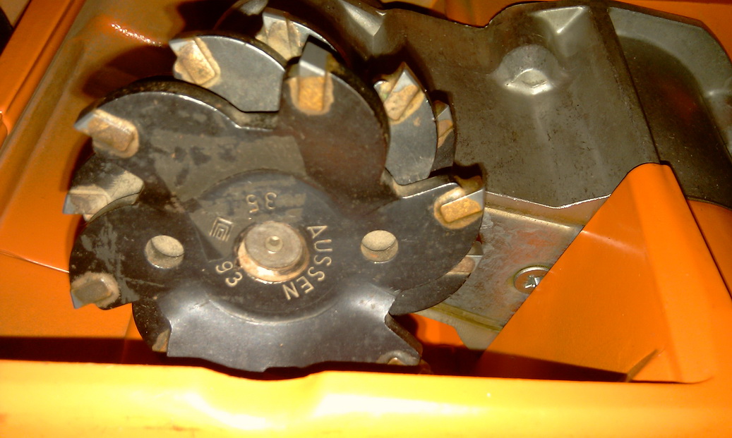 В общем взял я сегодня этот штрободел(штроборезом язык не поворачивается назвать):) Ждал меня аж с 1997 года;)Суровый цельнометаллический девайс Made in Germany. Самое интересное-режущая часть:три кривозубых твердосплавных фрезы,а их ось вращения довольно сильно наклонена к рабочей плоскости аппарата :a Буду пробовать,когда гипс/кирпич попадется.