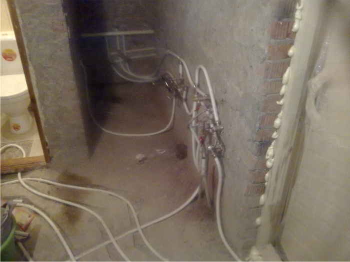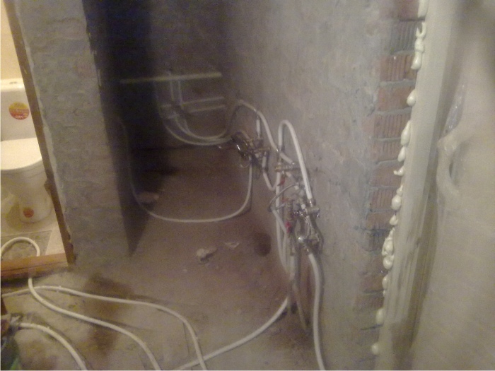 Дядя Сережа скорее последовательная, с котельной идет одна труба и разветвляется. Холодная вода уже присутствует в ванной, из под стяжки выходит желез...