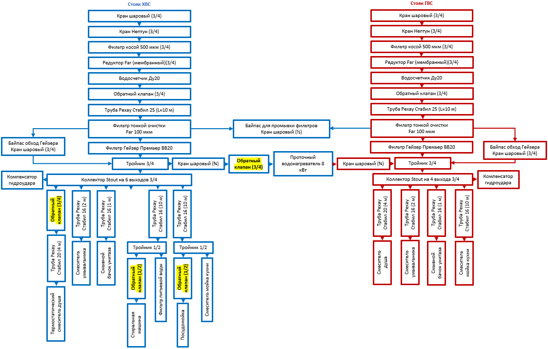 Накидал схему водоснабжения в квартире. Возник вопрос где необходимо ставить обратные клапаны?