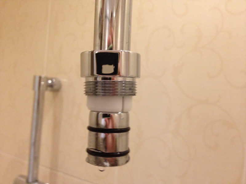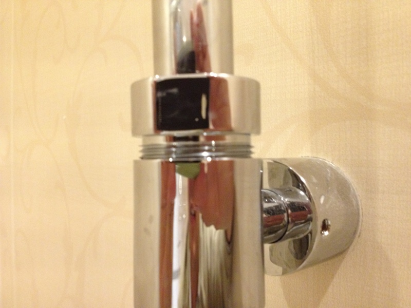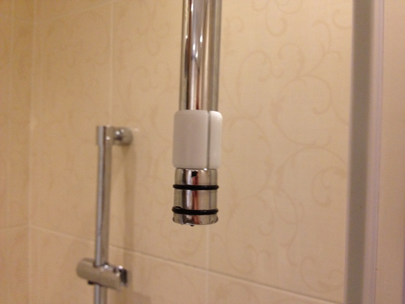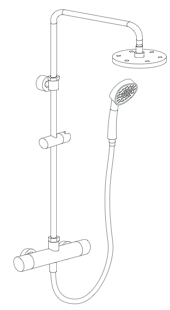 Есть душевая система с верхним душем. Этот самый верхний душ крепится на хромированной штанге к смесителю