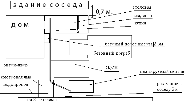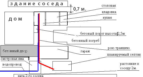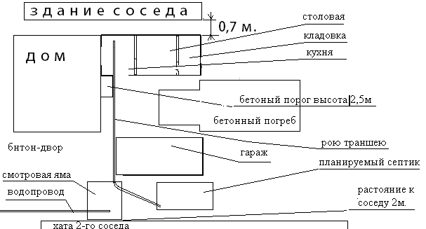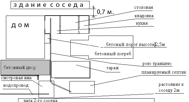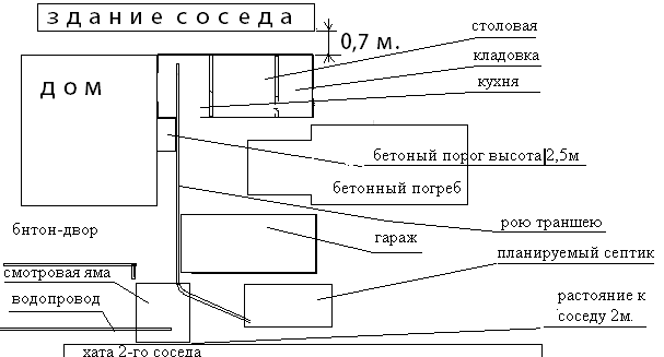 2) канашка идет с кухни, поворачивает в смотровой яме и идет в септик...