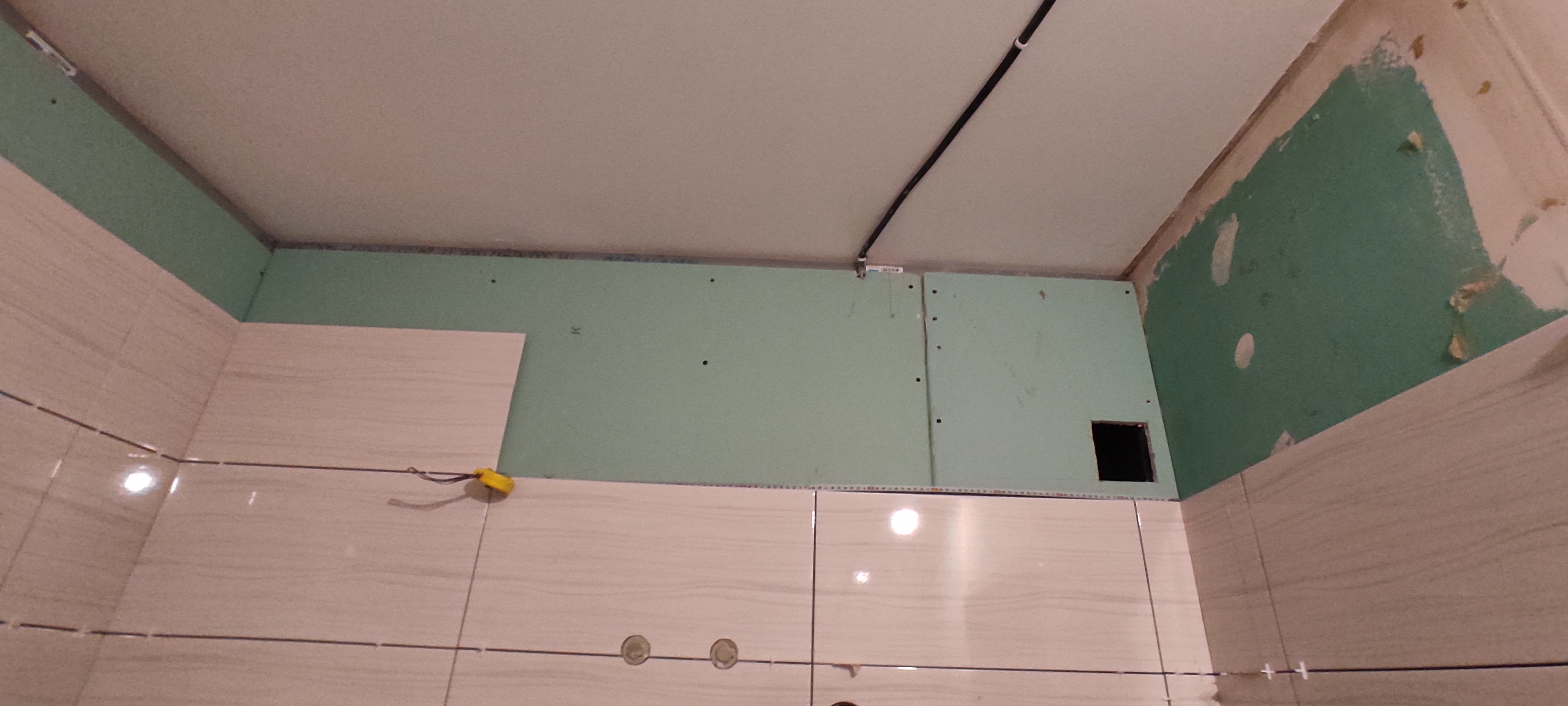 И ещё. Имеется вот такая стена с вентшахтами между кухней и санузлом. На расстоянии 10 см от неё установлен каркас из (алюминиевых?) направляющих, све...