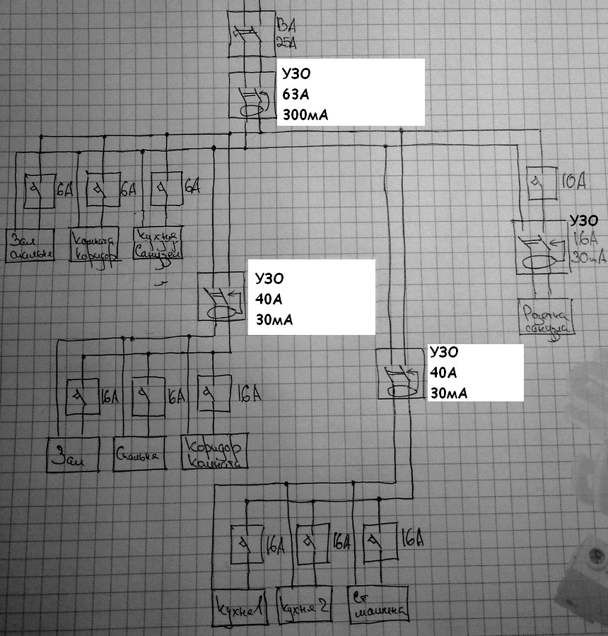 Если всё таки к моей схеме вернуться.. У меня планируется использование двух УЗО 30мА на две группы автоматов + одно УЗО 10мА для розетки в санузле.....