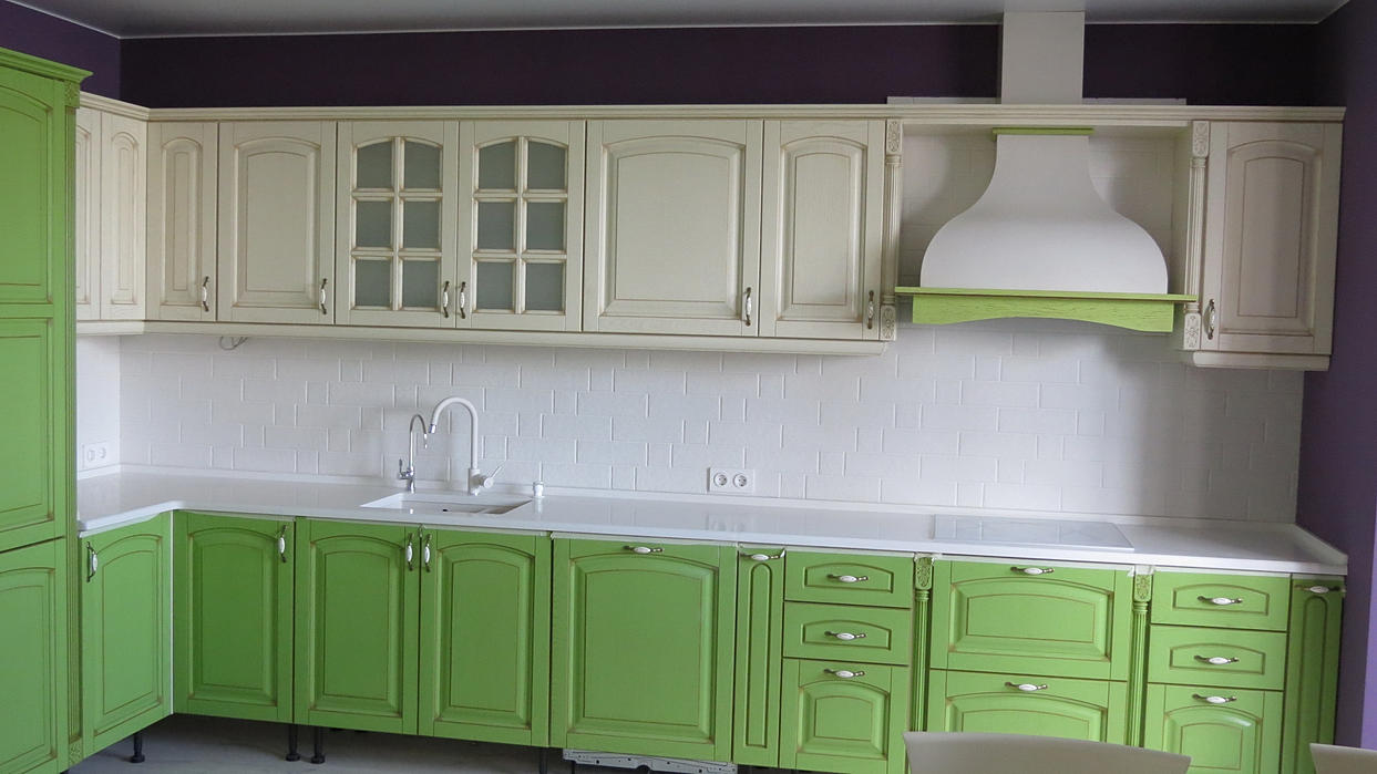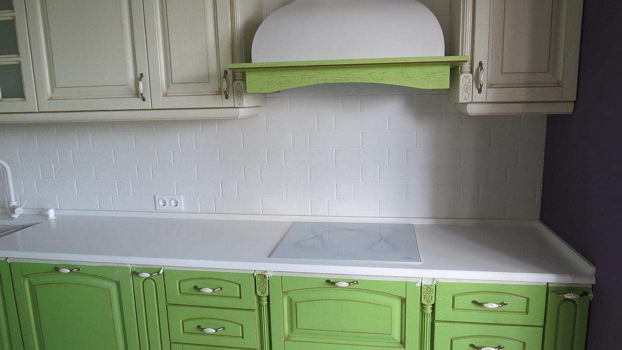 Столешница с плинтусом из кварцевого агломерата Луна Верде (Самсунг). Толщина материала 30мм. Размер столешницы 3,6м х 0.6м Мойка подстольного монтажа. Столешницу удалось запихнуть в половину слеба (3.1м х 0.7м)
