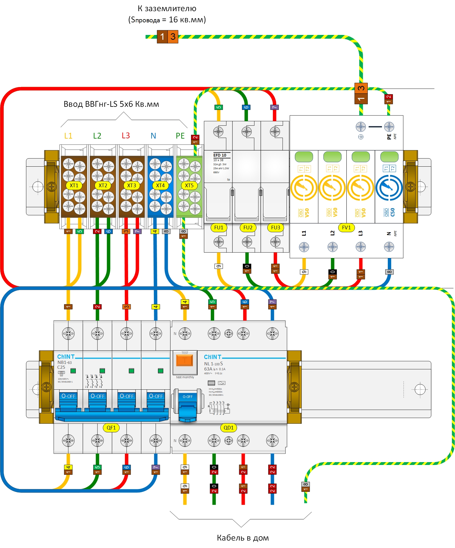 Я занимаюсь разработкой, сборкой, а также визуализацией схем электрощитов по индивидуальным заказами и ТЗ. В качестве основных производителей преимущественно использую оборудование и щиты от компаний ABB, Chint, Systeme Electric, IEK, DEKraft, Schrack. В качестве дополнительного оборудования используются решения от Новатек, DomaLogica, Mean Well, Меандр. Как правило, этими производителями перекрываются большинство потребностей заказчиков. В настоящее время в приоритете сборка осуществляются на Chint, ABB, Schrack, Hager, DEKraft (практически всё есть в наличии на складе поставщиков!). Для интересующихся самостоятельной сборкой готов предложить разработку схему щита, а также по необходимости отдельно спецификацию оборудования и материалов, с точным указанием заводских артикулов и ID. Разработка монтажных схем и визуализации щитов от 2500 руб. Также я готов предложить приобрести библиотеку элементов автоматического оборудования для визуализации щитов в среде Microsoft Visio 2010/2016. Это полностью мои разработки. В состав библиотеки входят: Chint (от 1000 руб.) Автоматические выключатели NB1 (1-4P), NXB1 (1, 2P); УЗО NL1, NXL1; Индикаторы ND9; Контакторы NCH8; АВДТ NB1L; Переключатели NZK1; Рубильники NF. DEKraft От 500 руб. Schrack Автоматика серии AMPARO: АВ, УЗО АВДТ 1/1N/4/3/3N От 750 руб. Mean Well (1000 руб.) Блоки питания на DIN рейку. Новатек Электро (1000 руб.) Реле напряжения серии РН, переключатели фаз серии ПЭФ-ХХХ, ограничитель мощности ОМ-310. Меандр (1000 руб.) УЗМ-51М, УЗМ-50Ц, УЗМ-3-63, РИО-1М, РИО-3-63, МуАВР-, ВАР-М01-63, МРП-101/102 IEK. Серия KARAT. АВ 1Р-4Р хар-ка С, ВДТ 2Р/4Р тип А - 349 руб. Серия АRМАТ. АВ 1Р-4Р хар-ки В, С. ВДТ 2Р/4Р тип А, А-S - 399 руб. Eaton (от 1000 руб.) АВ, УЗО, АВДТ серии xPole Home АВ, УЗО, АВДТ серии PL7 Wiren Board, Zennio, Jung (2000 руб. каждый набор). Также в наличии есть библиотеки ABB, Hager, Siemens. Преимущество библиотеки заключается в лёгкой и быстрой возможности редактирования элементов под различные задачи. В силу идентичности конструкций ряда линеек оборудования, простым кликом можно изменить наименование продукта, тем самым создав новую серию. Кроме того, библиотека полностью совместима с такими программами проектирования, как Revit, OmniGraffle, AutoCAD. Библиотека окажется весьма полезной тем, кто занимается, кроме разработки однолинейных схем - конструкциями и компоновкой щитов. Это удобно для визуализации размещения оборудования в рамках щита и позволяет оценить качество проекта в целом и удобство сборки в дальнейшем. Если Вас заинтересовали мои предложения, прошу обращаться: М.т. (WhatsApp, Telegram): +7 (916) 564-38-35; E-mail: electro_boxes@mail.ru Пример. Схема ВРУ. Решения Chint, OBO Betterman, DKC.