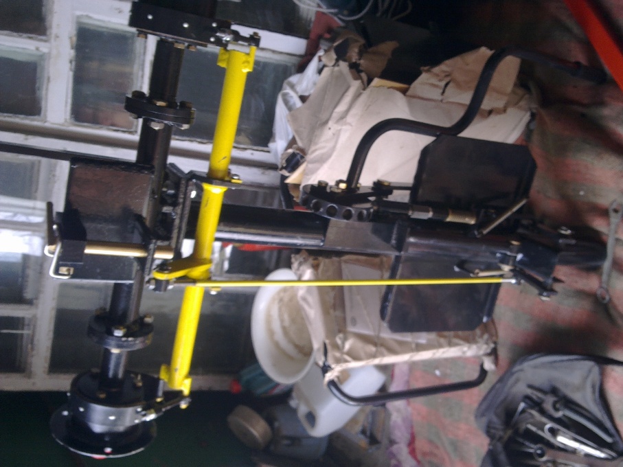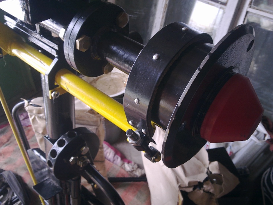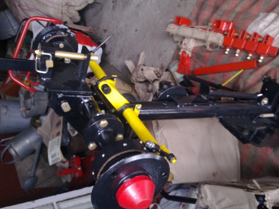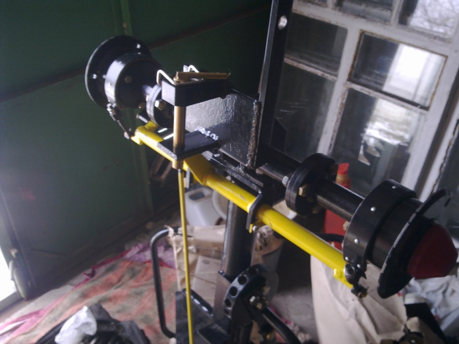 Спасибо Игорю (Игорюну), привез мне адаптер и раму РНУ-1В. Забирал адаптер в разобраном виде, подгонять ничего при сборке не пришлось, все размеры и зазоры выдержаны. Единственное, над чем пришлось поработать - расшатал вокруг своей оси предварительно смазав маленькую тягу тормозного хомута (на фото), видать свежую краску хватонуло. Краска при ударах отслаивается, похоже красили в холодном помещении.
