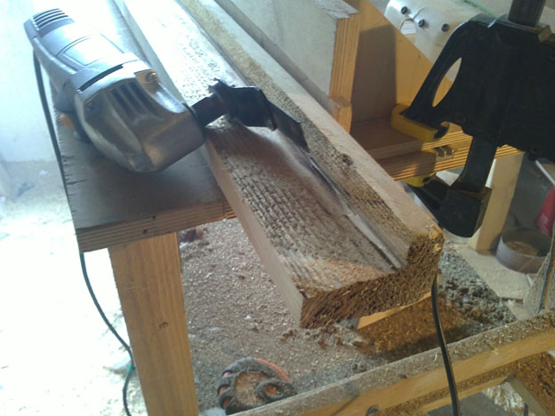Разумеется, не утерпел конца разборок между заказчиком и мастерами на тему - кто крайний и кто будет это все исправлять, и полез пилить бошиком 250-м, дефолтовой пилкой биметалл. Пилилось долго, но в итоге получилось вполне аккуратно. Обычной ножовочкой тоже можно было бы, но еще более долго и гиморно - щель между полом (ламинат) и дверью около сантиметра. Сначала прошелся вдоль всей двери секторной пилкой - чтобы линия среза была поровнее, а потом уже добивал погружной.