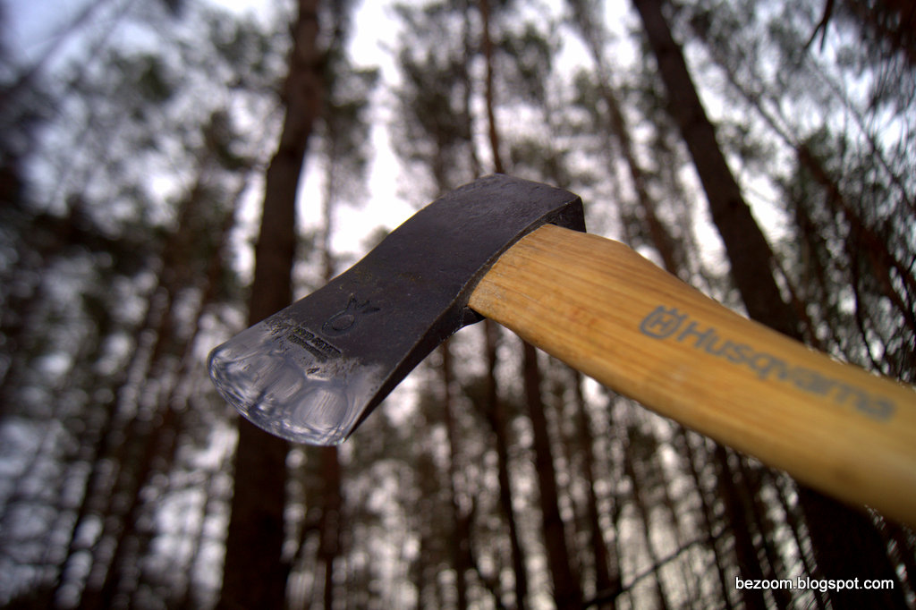 Вначале загорелся купить , но почитав отзывы решил брать "Хуску" за 41.50 € против 93€ за Gränsfors. Конечно, заточена она не так суперски, как Gränsfors, и насажен не очень ровно, а может просто кривовато выкован сам по себе. Буквально чуть чуть "лопасть" повернута относительно ручки.